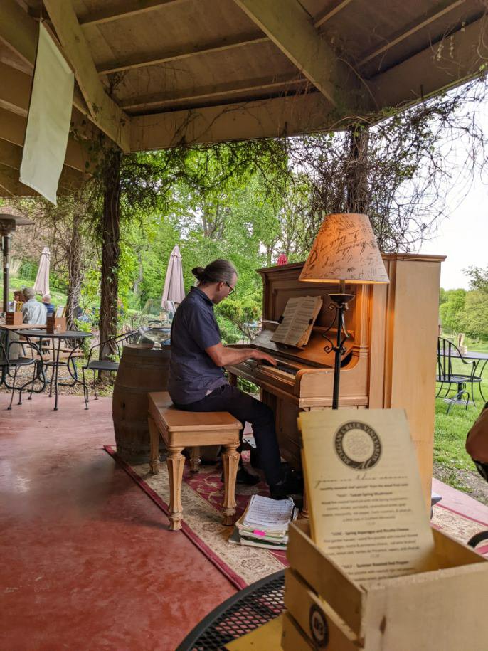 Natural beauty in the countryside Hubby quaffing his Schell’s beerClassical and Jazz piano played liveI love a glass of Bison Blu wine and heavenly music 🎶Never stop caring ❤